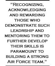 Recognizing, acknowledging and rewarding those who demonstrate such leadership, and mentoring them to further develop their skills, is of paramount importance in building a strong Air Force team.